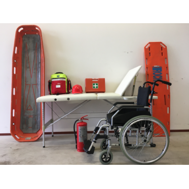 EHBO Service 24 verzorgt de complete behandelruimte uitrusting met onder andere een behandeltafel brancard, stoelen, tafel, rolstoel, verbandmiddel, brandblusser, AED, enz….