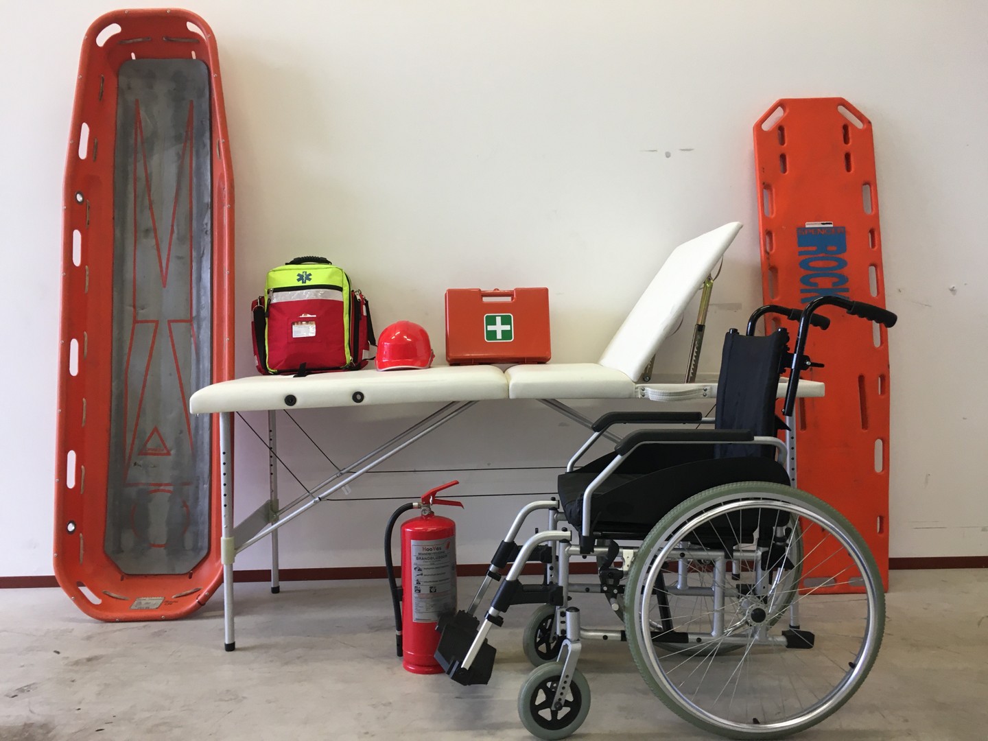 EHBO Service 24 verzorgt de complete behandelruimte uitrusting met onder andere een behandeltafel brancard, stoelen, tafel, rolstoel, verbandmiddel, brandblusser, AED, enz….
